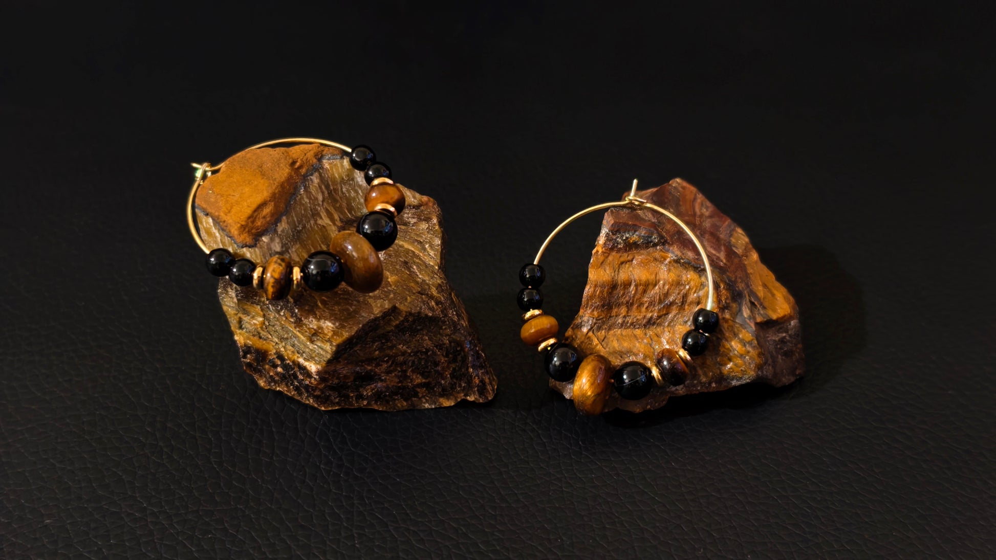 우주의 균형을 이루는 에너지 귀걸이 | 검은 마노와 노란 호랑이 눈 귀걸이